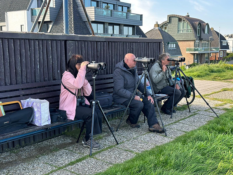 U ziet hier de zeetrektellers in actie, van links naar rechts; Rifka Roos, Fred Geldermans en Kees Rebel.