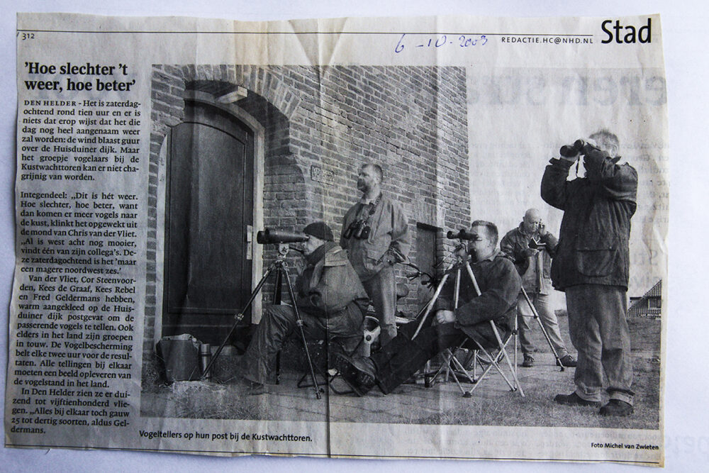 De Helderse zeetrektellers doen al jaren mee aan dit evenement. Het bewijs hiervoor levert onderstaand krantenartikel uit 2003.
